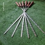 סט שיפודים עם ידית עץ עשוי נירוסטה 730*3*12 מ"מ פרימיום 6 יח'